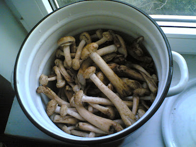 С утра, поехав под Боярку, нашёл пару килограмм опят, думаю что совершенно случайно. Они были только в одном углу только одной вырубки.